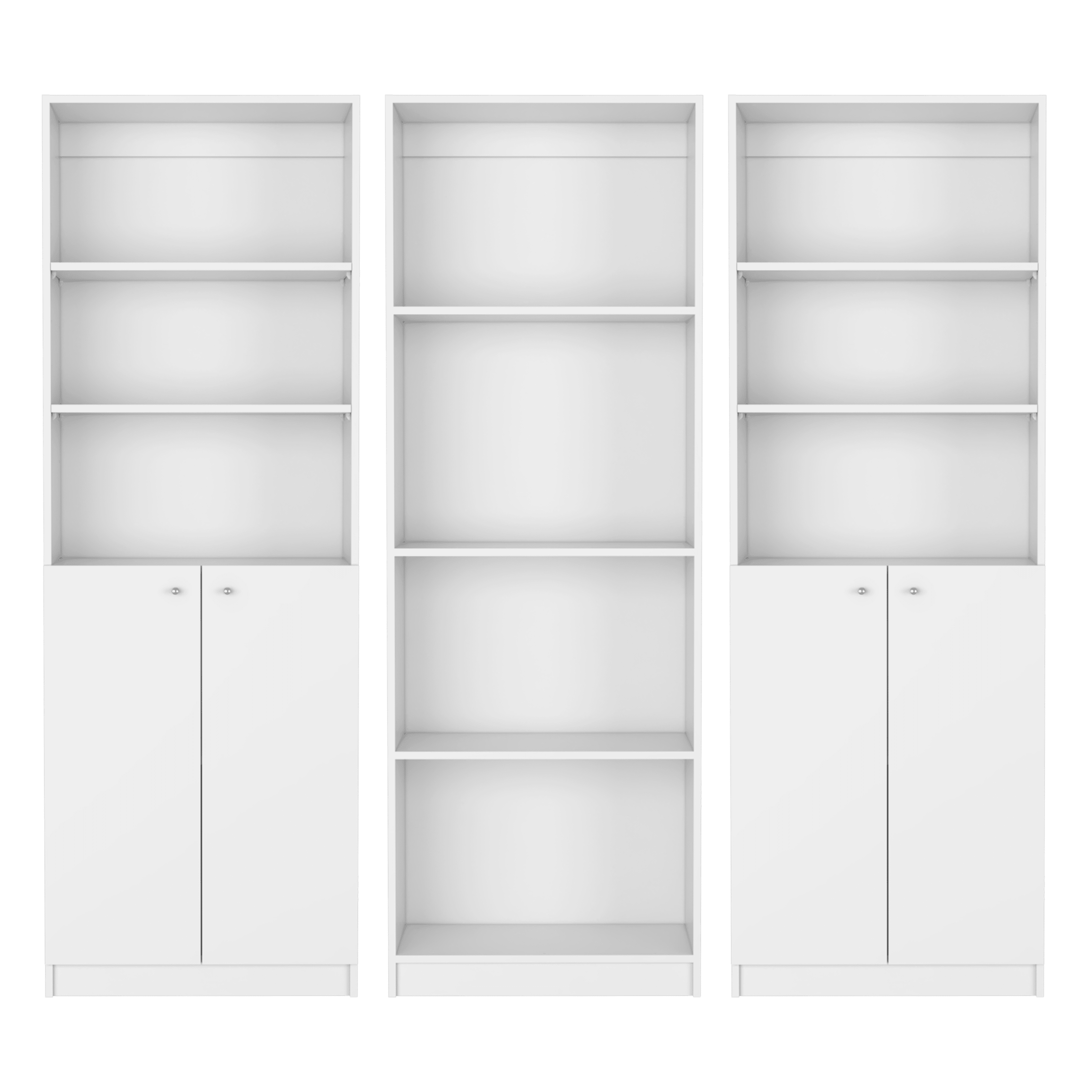 Emery 3 Piece Living Room Set with 3 Bookcases, White