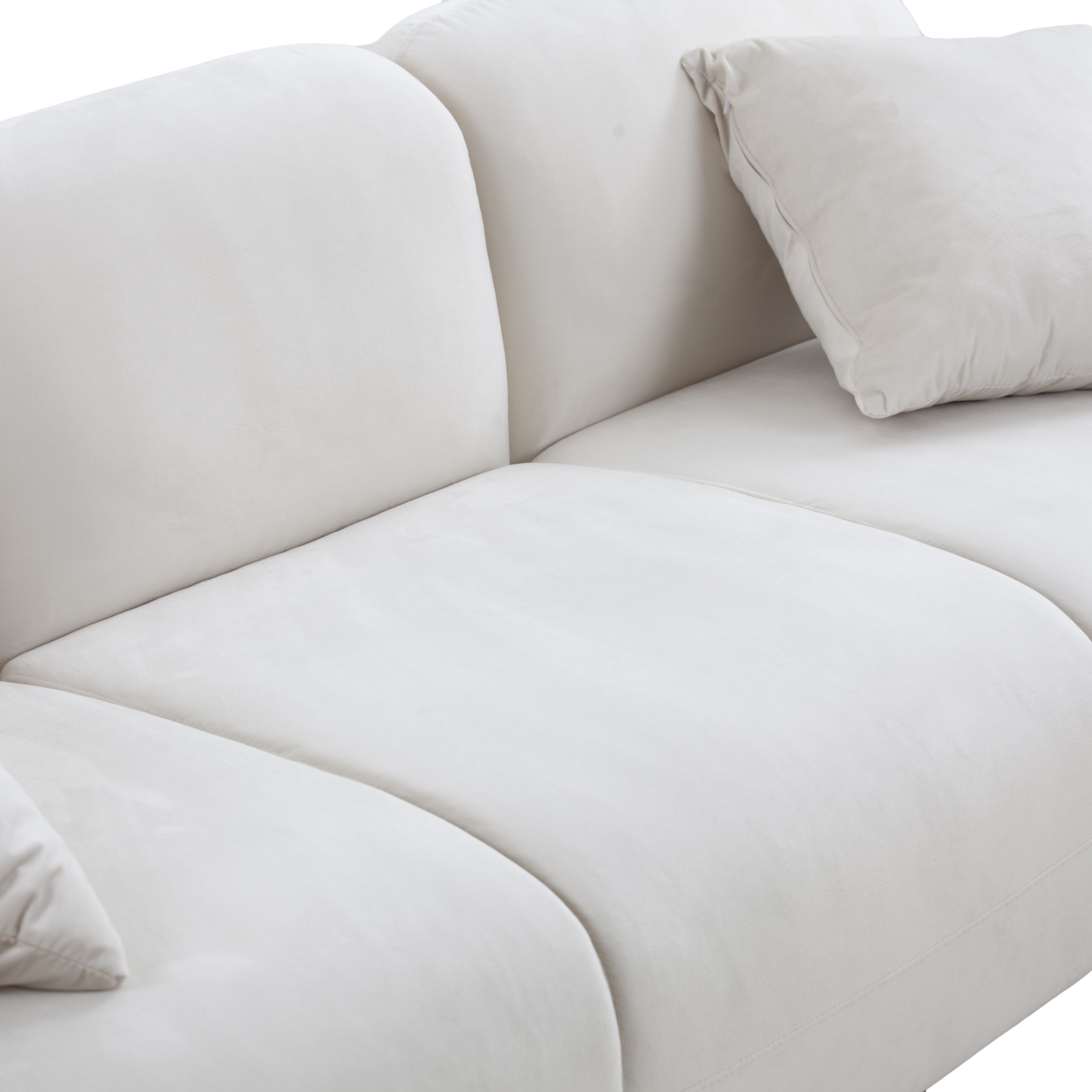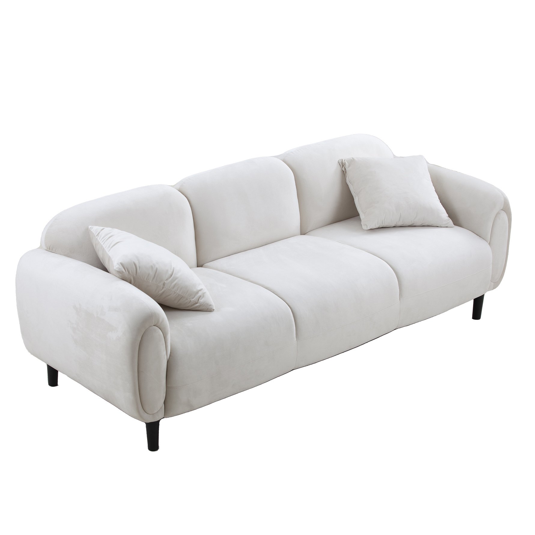 Mid Century Modern 3 seater Couch Velveteen sofa with solid wood leg for Living Room, bedroom, livingroom Beige