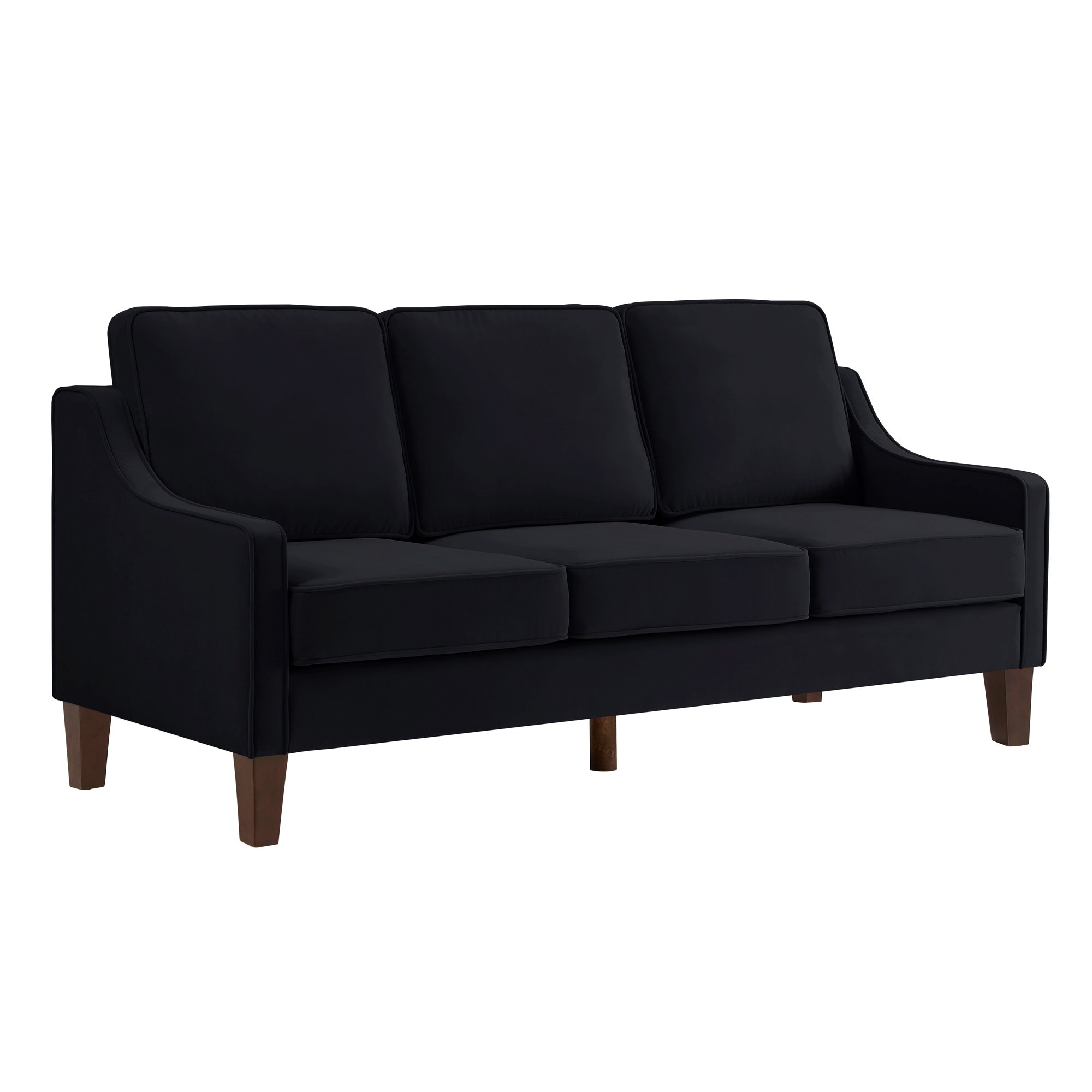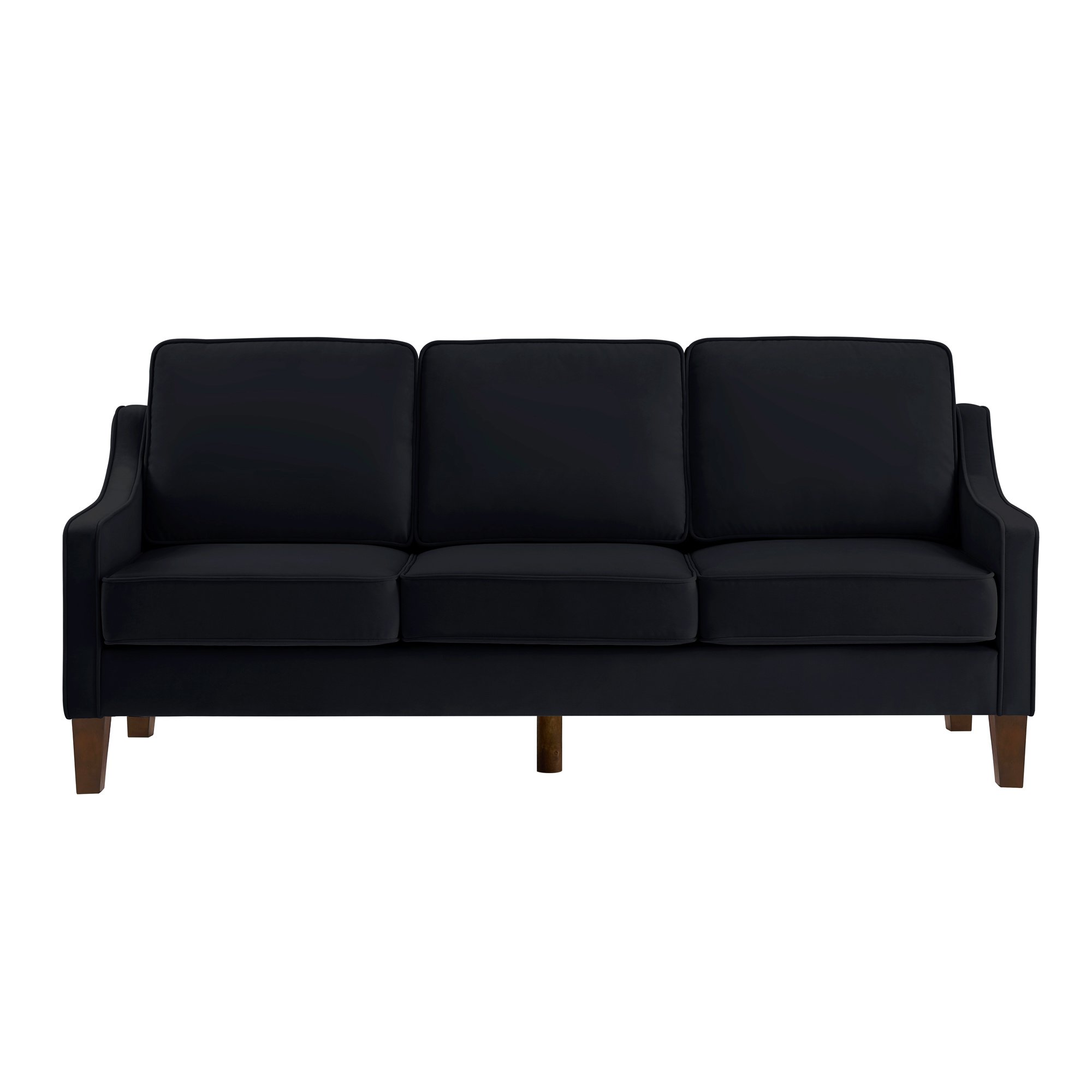 Home > Modern 3 Piece seat Sofa Couch with Scooped Armrest/Wood legs,Upholstered Velvet 3-seat Sofa with Removable Cushions for Livingroom Bedroom,Black