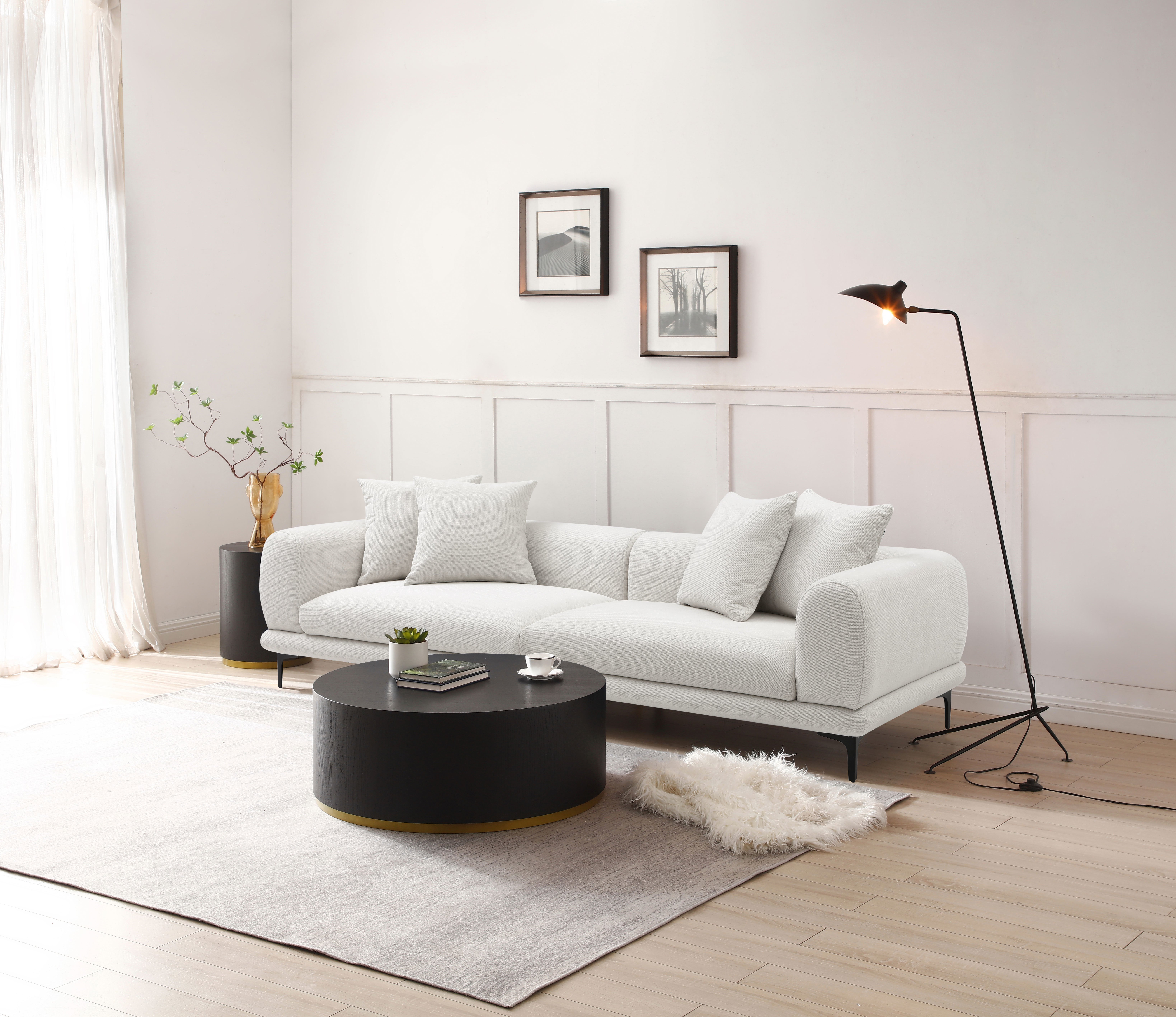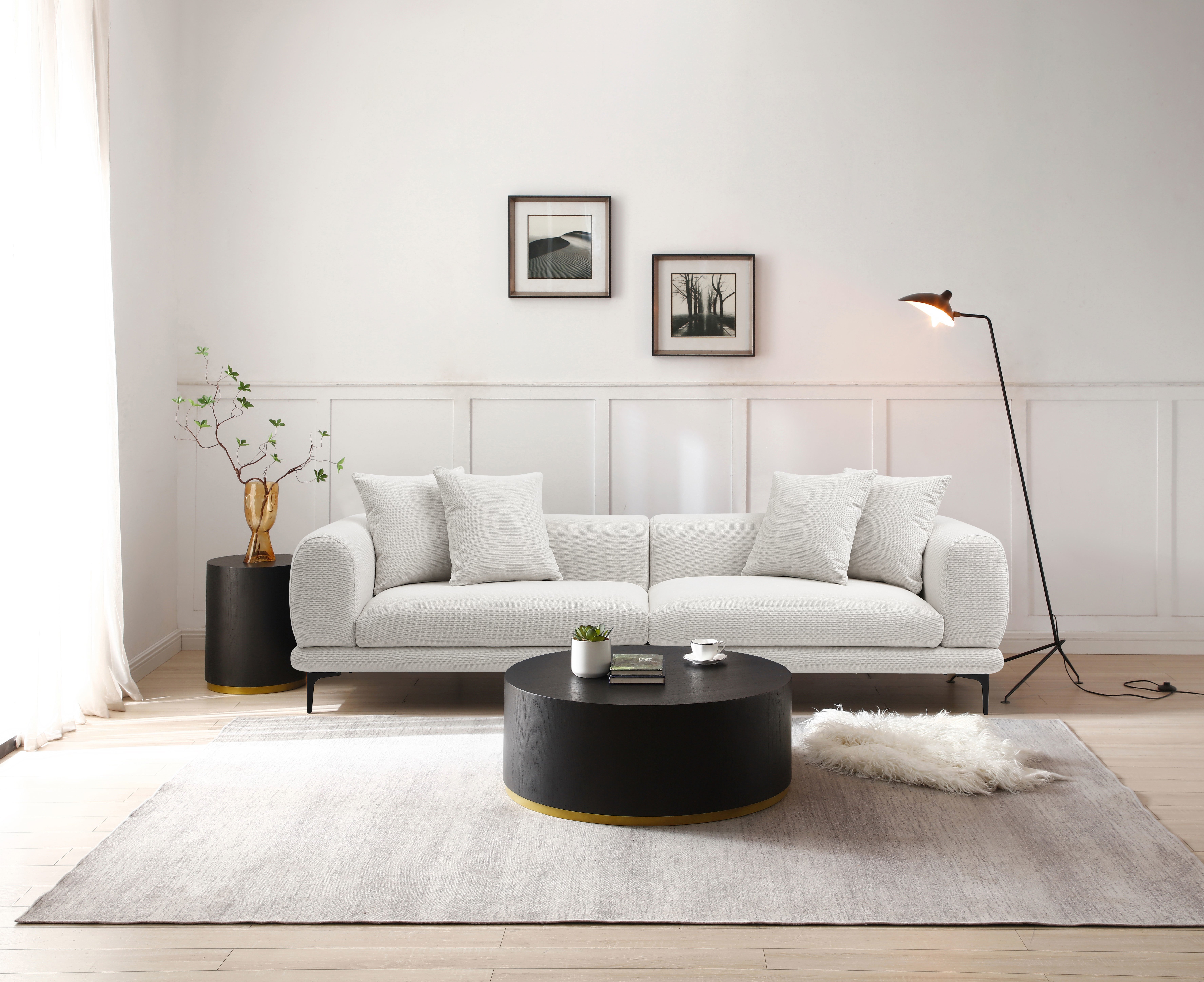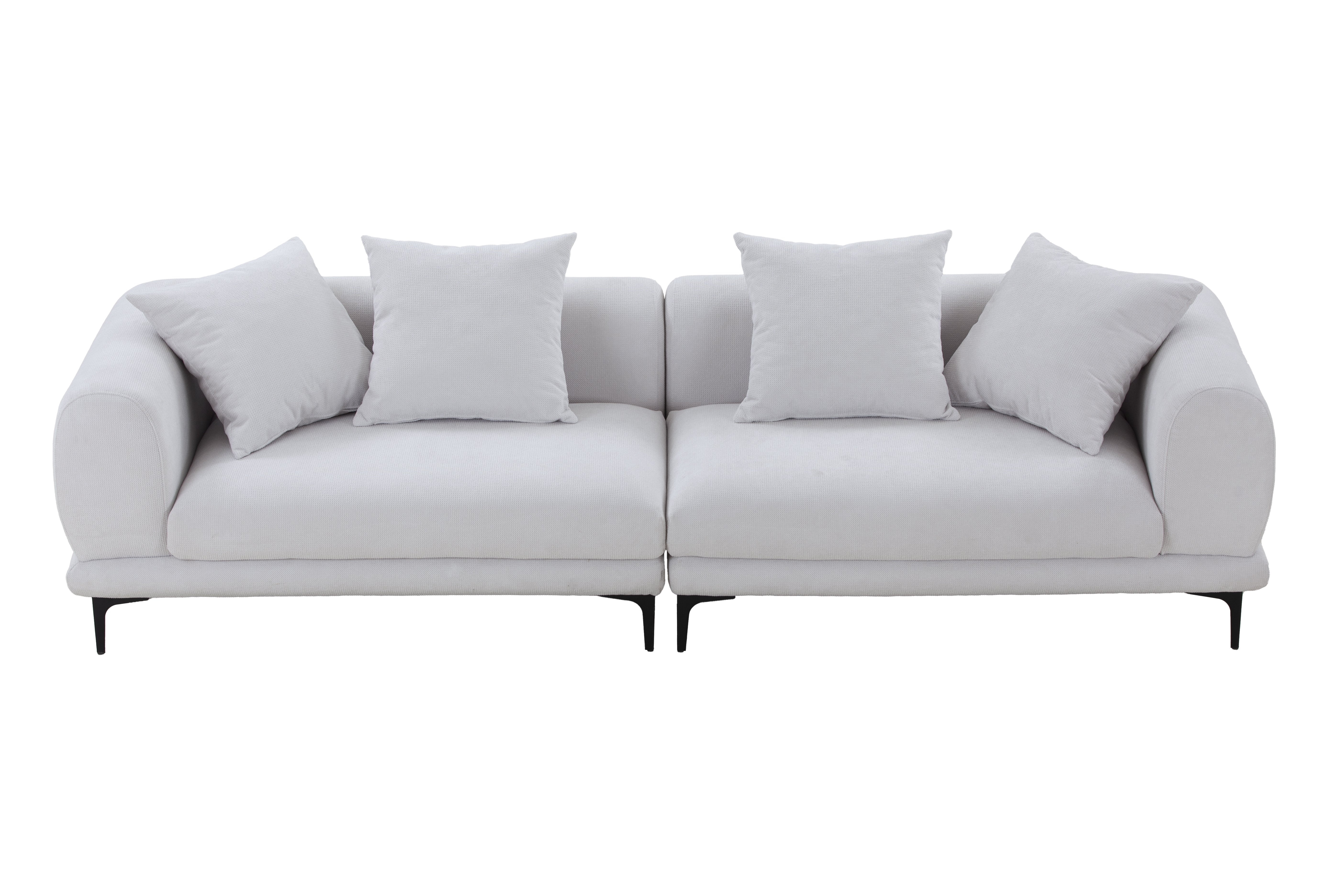 Mid-Century Modern Sofa Couch 4-Seater Fabric Sofa for Livingroom, Office ,Apartment, Business LoungDimension:L 102''XW 36.20''H 25.40''MODERN SOFA: Make room for instant comfort and style with this designer sofa. Wrapped in a fabulous fabric, this sofa will set the scene for easy livingLONG LASTING QUALITY: This quality-built couch is crafted with a corner-blocked frame, wood seat base and exposed/ black metal legsHIGH STYLE: Whether your look is mid-century inspired or modern, you'll love how this sofa looks.MINOR ASSEMBLY: Simply attach legs and your sofa will be ready for instant enjoyment.