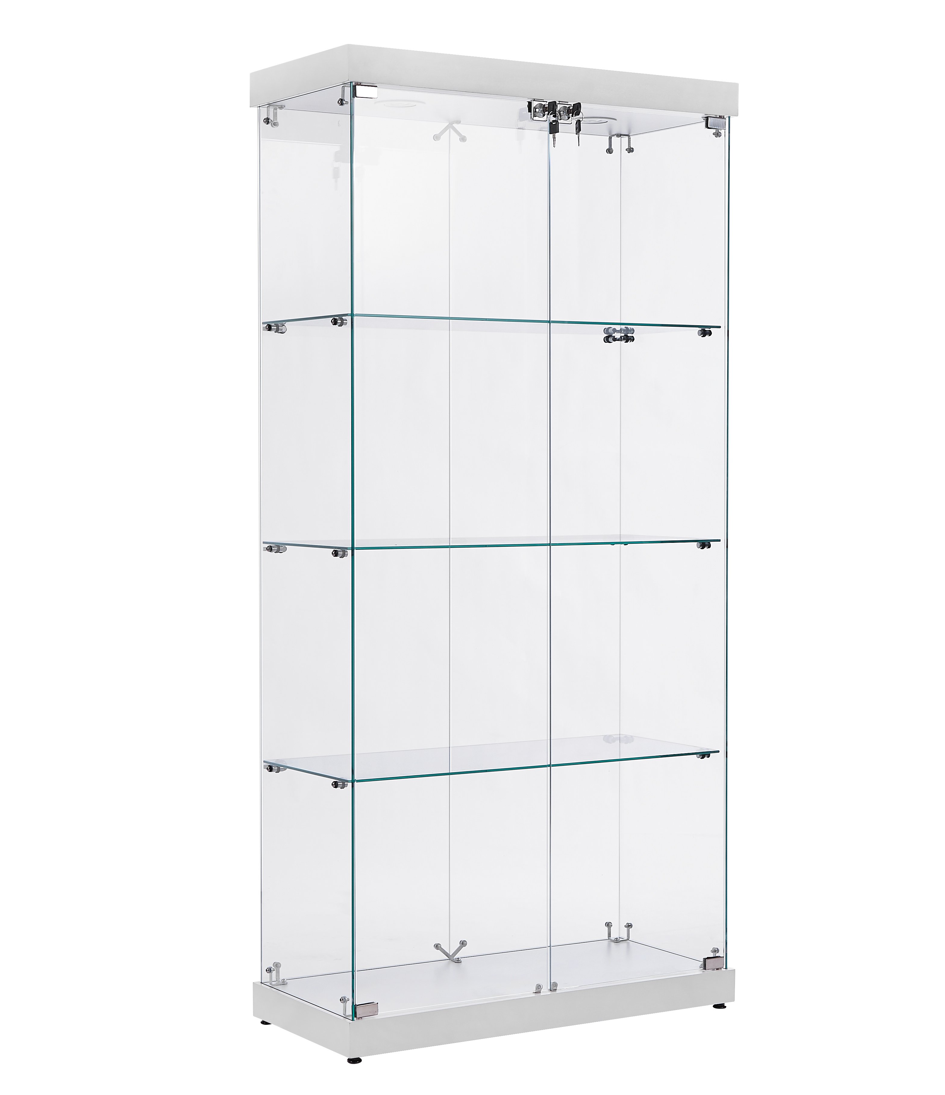 Double door glass display cabinet with lock: double door glass cabinet is easy to open and close, with two locks to ensure the safety of display items are not easy to lose, the daily use of both durable and practical.