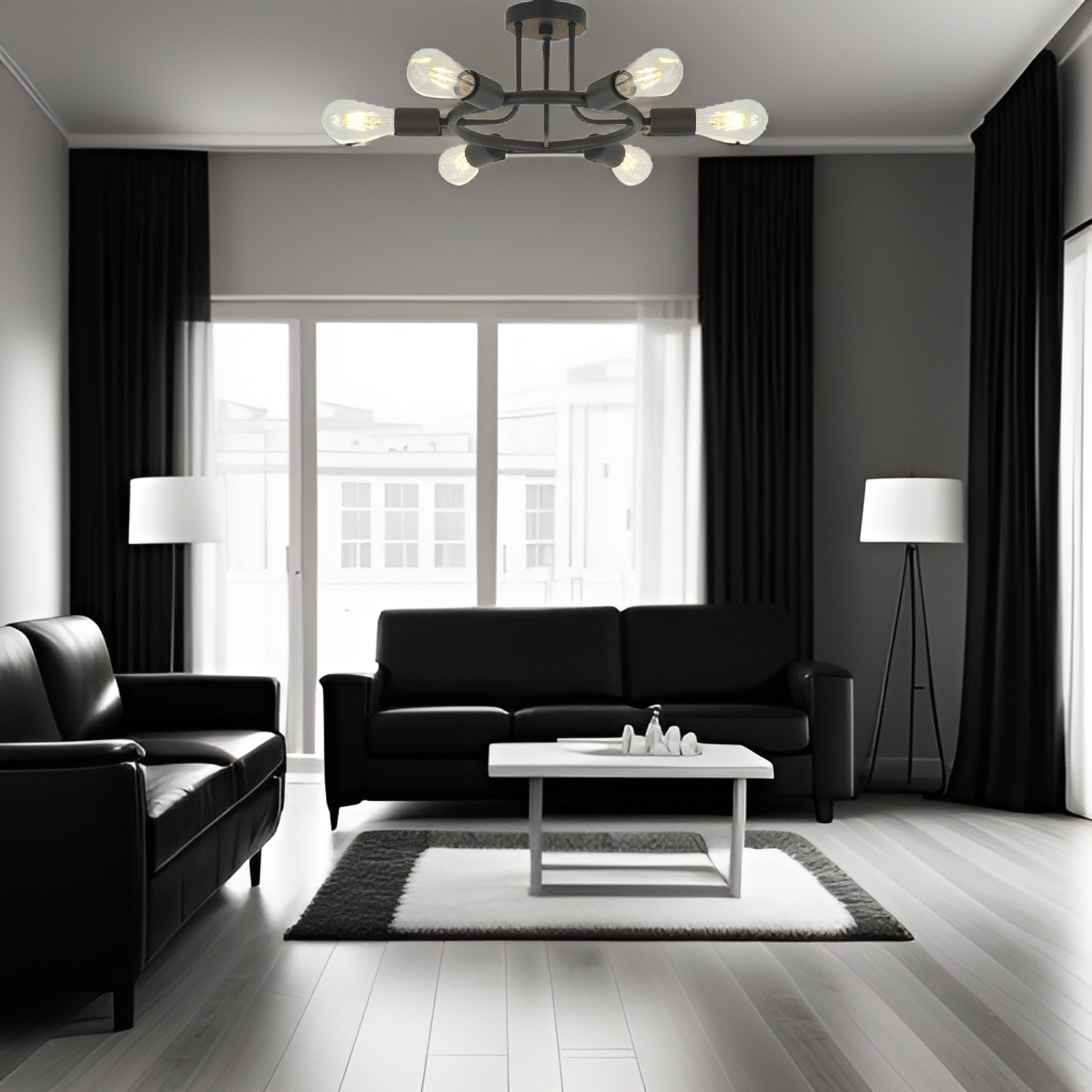 Home > 6 Light Modern Sputnik Lights Semi Flush Mount Ceiling Light Black Finished