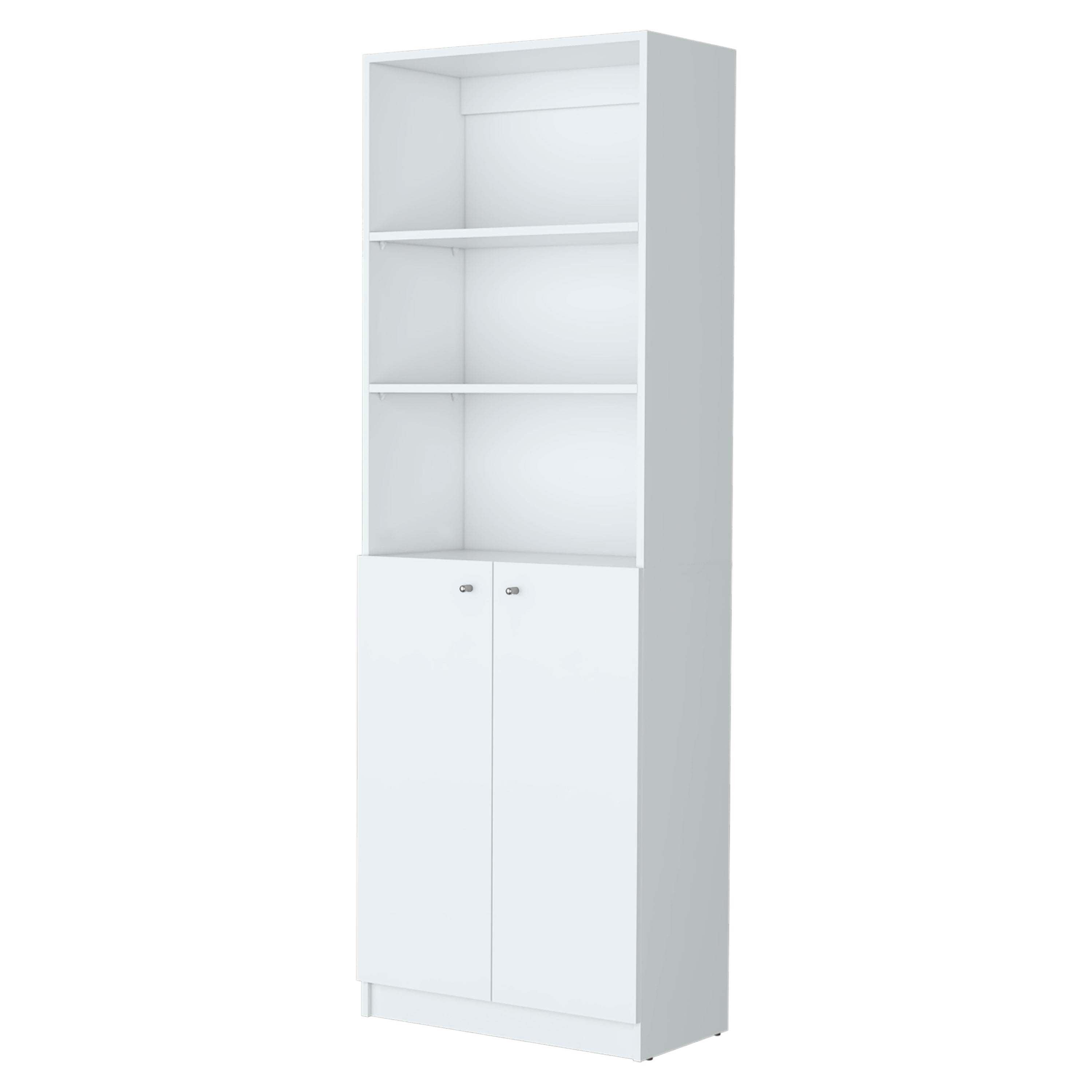 Discover the epitome of modern elegance and practicality with the 2-door bookcase, featuring a unique double-door configuration unveiling two finely crafted shelves for cherished items, complemented by three open shelves above for ample display space of literature, decor, or keepsakes. It promises to be the centerpiece of any room it graces, combining style with functionality effortlessly.