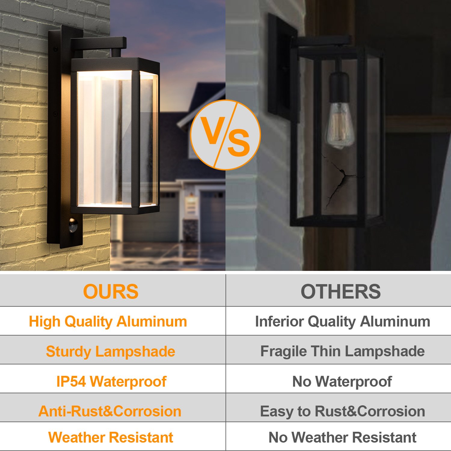 4.IP54 waterproof: all-weather resistant, wall sconces made of high quality aluminum, so anti-rust & corrosion. Never worry about rain, storm, sleet, snow, ultra high or low temperatures, this light fixture will still perfect after years of using.