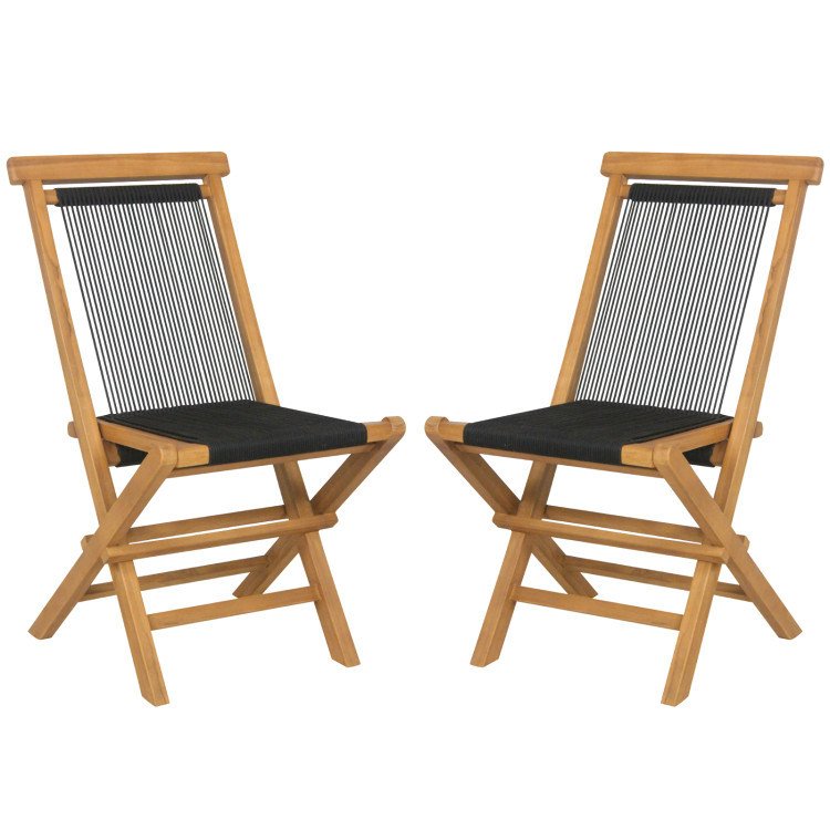 Home > 2 Piece Indonesia Teak Patio Folding Chairs with Woven Rope Seat and Back for Porch Backyard Poolside