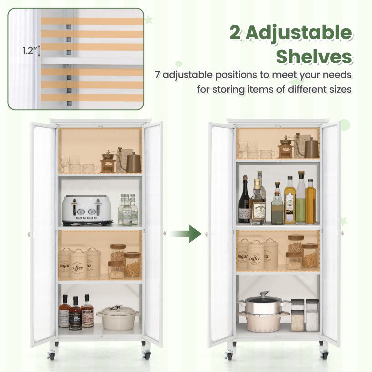 2.Reliable Metal Frame: The pantry cabinet features an integrated metal frame that is very sturdy. The wear-resistant surface has great strength and ensures long-time use. With an overall weight capacity of 132 lbs, the cabinet is a reliable choice for storing your personal belongings.