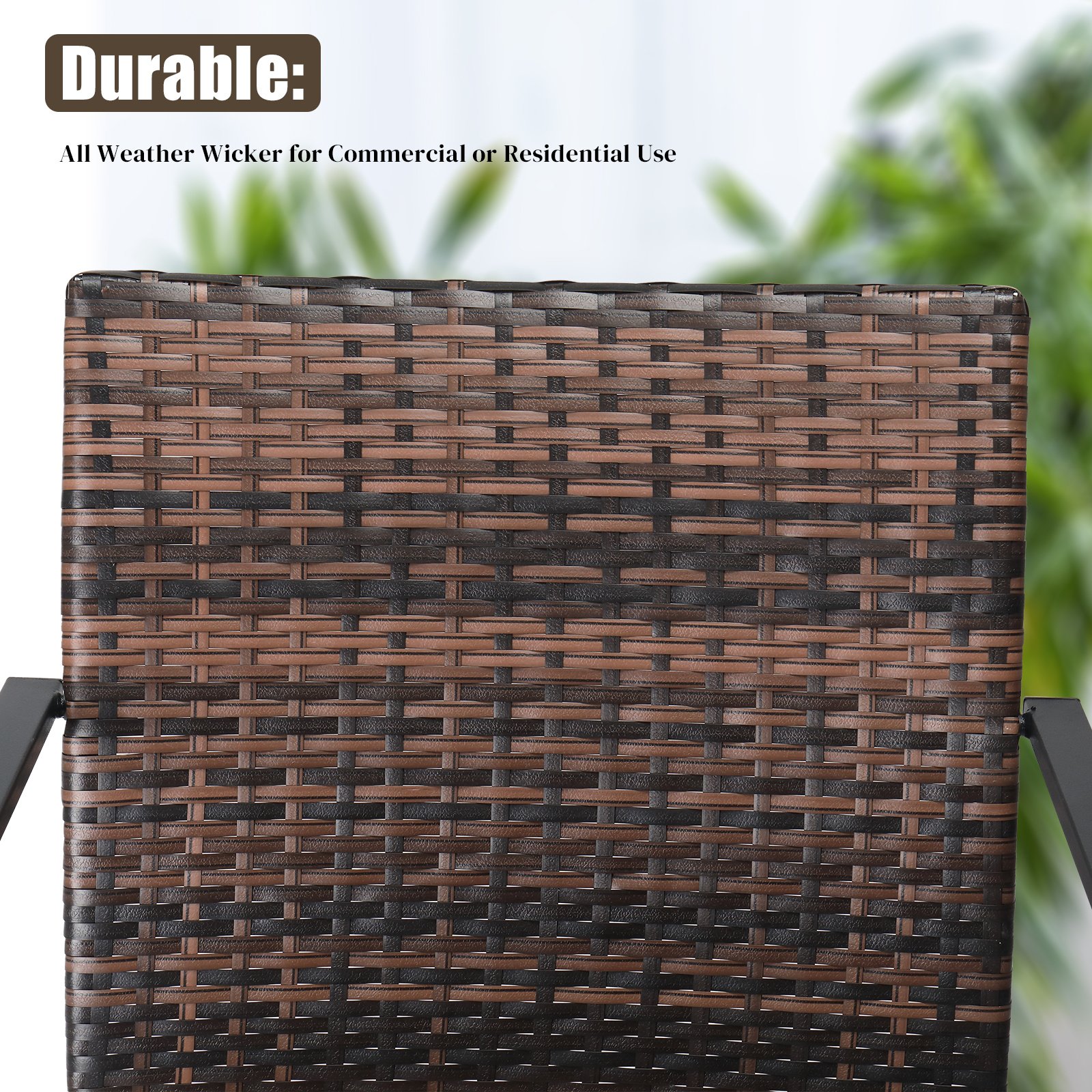 1. Durable and Weather-Resistant: Our patio dining chairs are crafted with heavy-duty steel frames and wrapped in all-weather wicker, ensuring long-lasting durability and resistance against the elements.