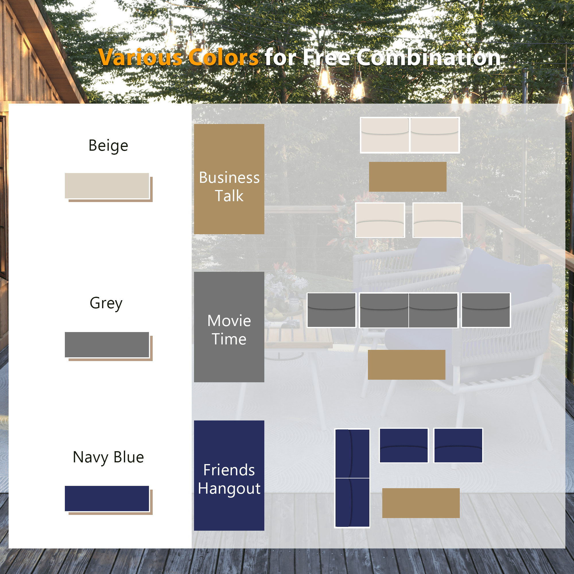 You have the flexibility to mix and match our sofa set according to your specific requirements, allowing you to seamlessly cater to various scenarios such as business meetings, leisurely movie nights, or casual hangouts with friends.