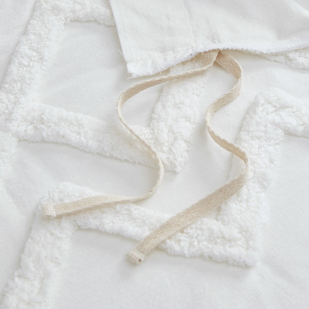 Farmhouse cotton duvet cover set with tufted white chevron chenille