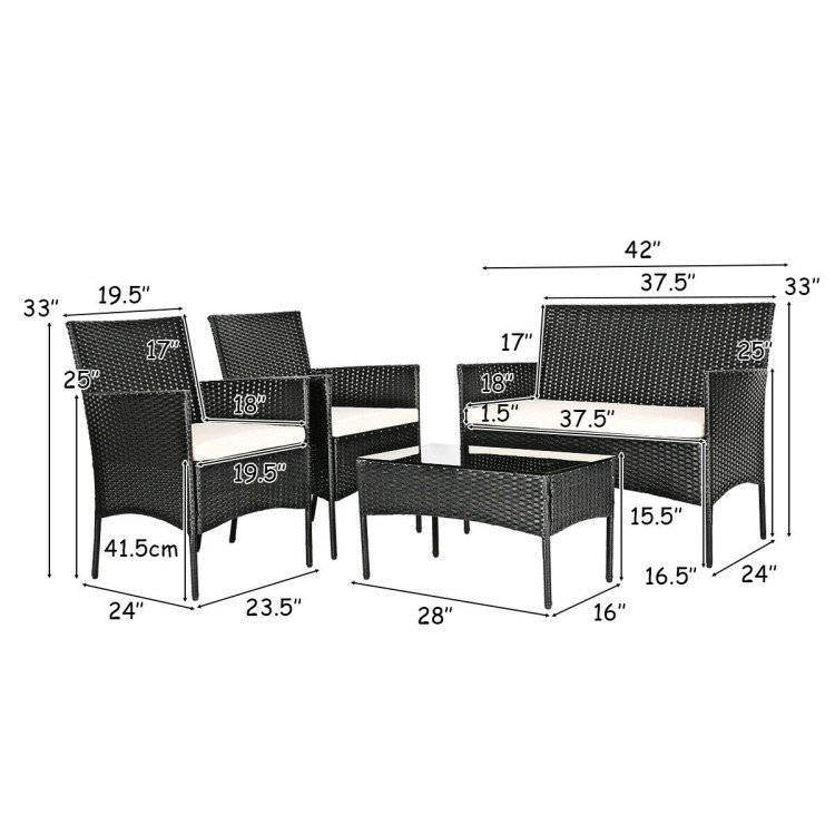 Material: PE rattan; steel; tempered glass; polyester fabric; sponge
