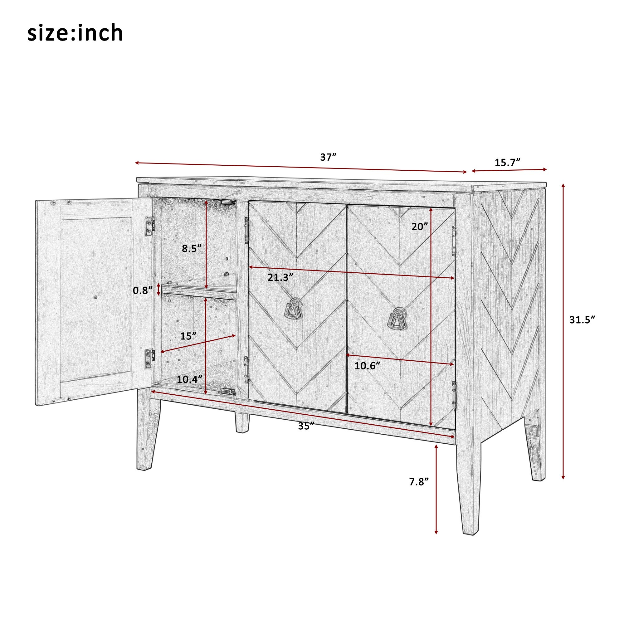 Inspired by a vintage and unique medieval style, this three-door cabinet features elegant wood accents and antique bronze pull handles that add a timeless charm to any room. Whether you want to use it as a console cabinet, a sideboard self-service server, or a chic storage unit, it will seamlessly blend with any home décor.